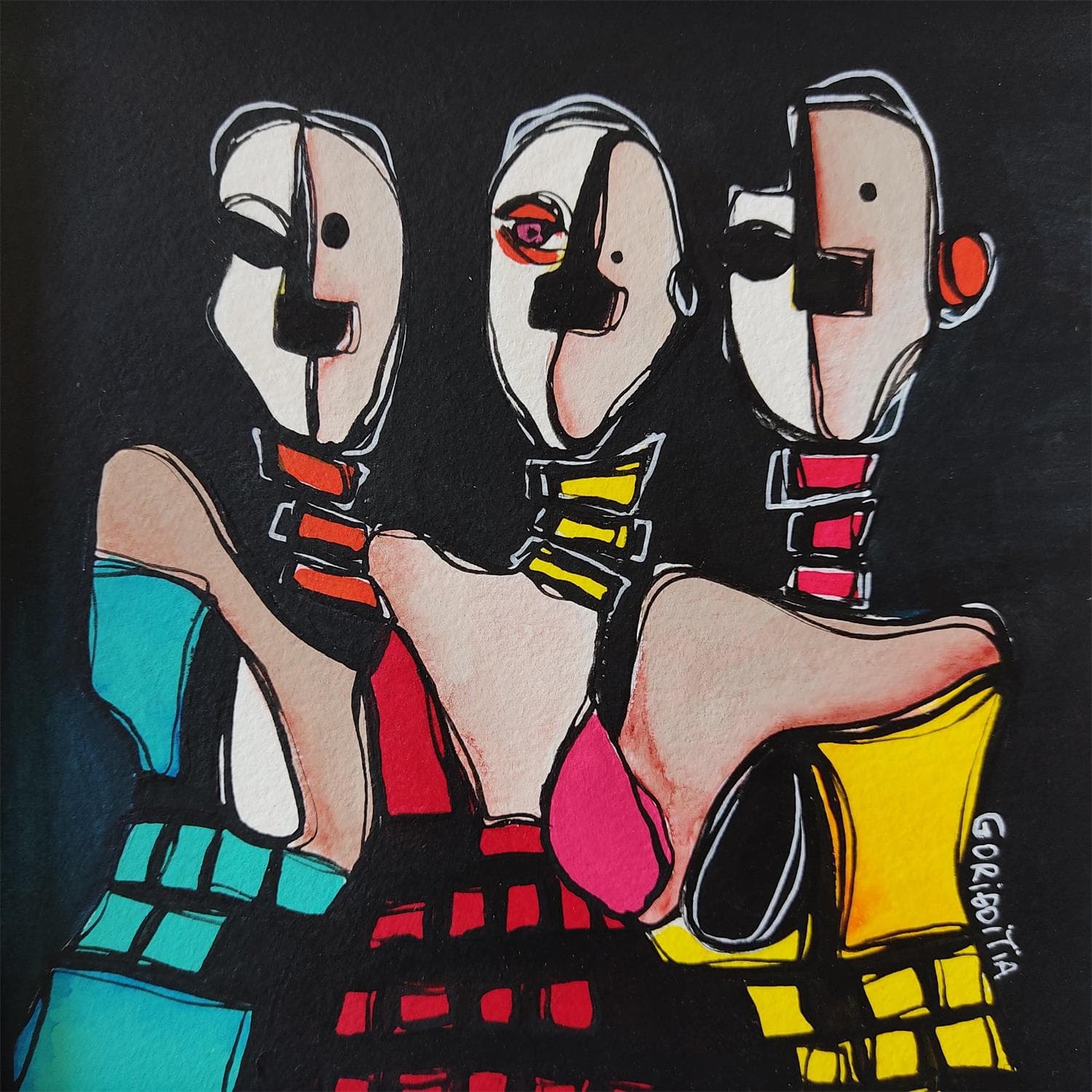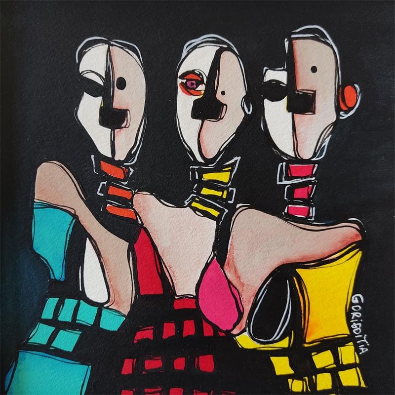 This unique and original contemporary artwork "Las tres calvas" on the subject of Portrait has been created by the contemporary artist Gorigoitia Karla .