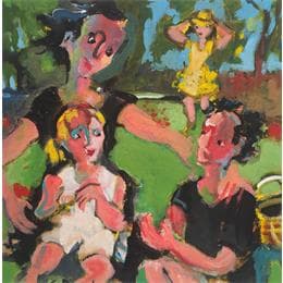 This unique and original contemporary artwork "Coline et ses petits enfants" on the subject of Life style has been created by the contemporary artist Doucedame Christine.