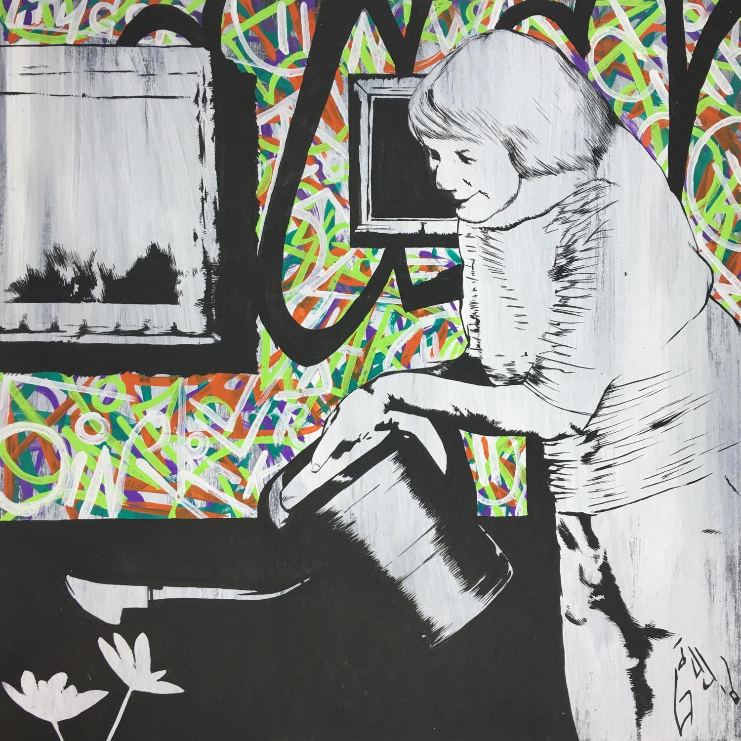 The artist used Acrylic, Graffiti media on Canvas to create this Street art, Small size painting.