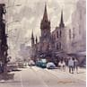 Street view IPintura Street view I por Dandapat Swarup | Pintura Figurative Landscapes Urban Life style Watercolor