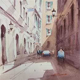 Paris alleyPintura Paris alley por Dandapat Swarup | Pintura Figurative Urban Watercolor