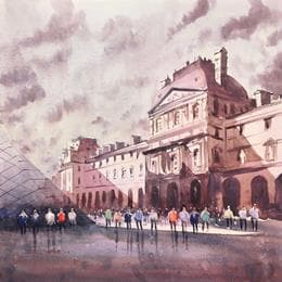 Pintura Louvre in the sun por Dandapat Swarup | Pintura Figurative Urban Watercolor