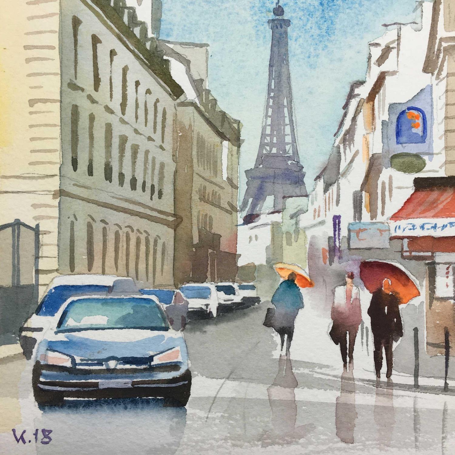 Pintura Paris-M4 por Khodakivskyi Vasily | Pintura Figurative Urban Watercolor