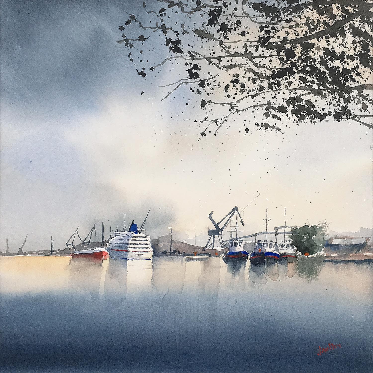 Port de BordeauxPintura Port de Bordeaux por Min Jan | Pintura Figurative Marine Watercolor