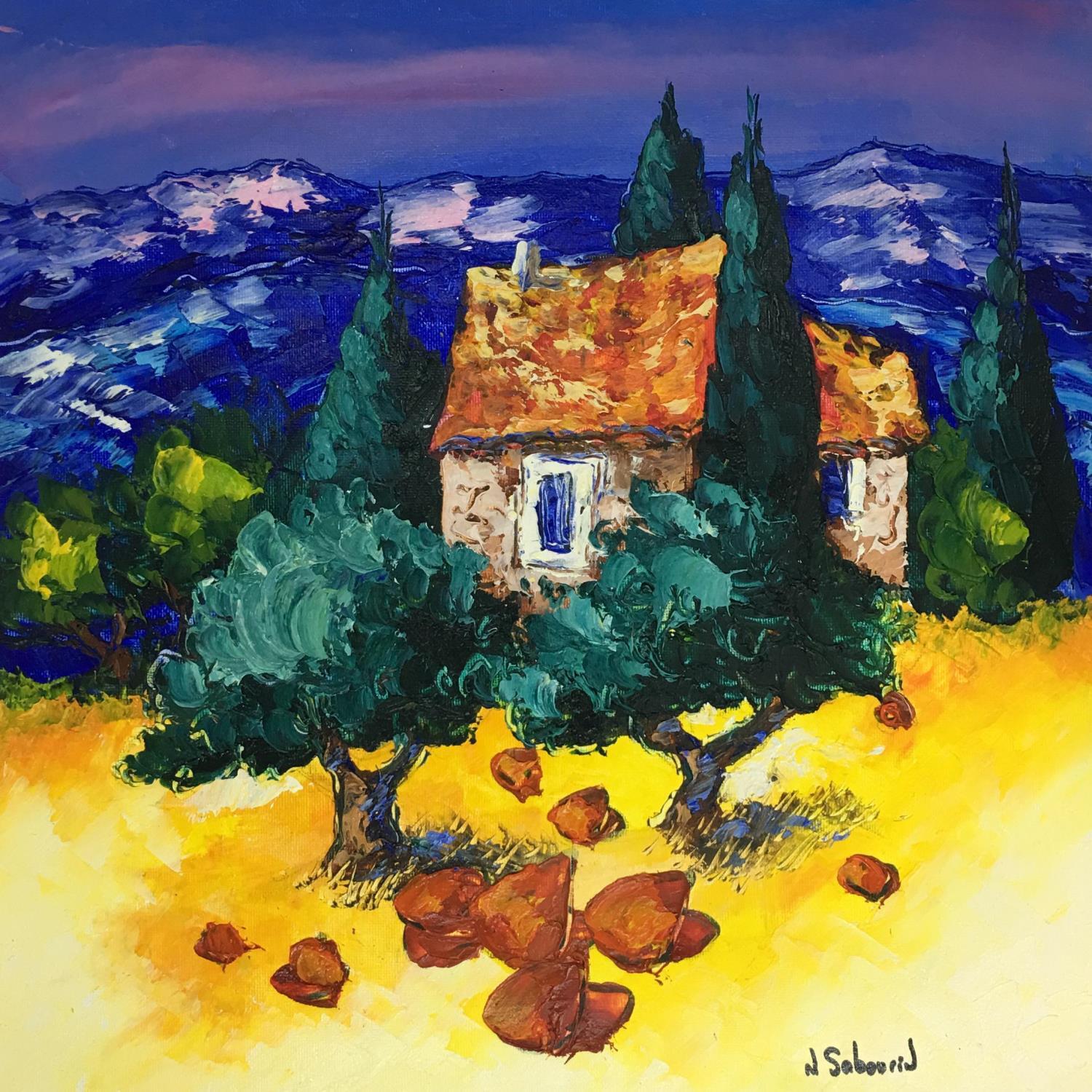 This unique and original contemporary artwork "Vieilles cabanes non loin du Ventoux" on the subjects of Portrait, Pop icons has been created by the contemporary artist Sabourin Nathalie.