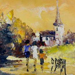This unique and original contemporary artwork "En sortant de l'école" on the subject of Landscapes has been created by the contemporary artist Dupin Dominique.