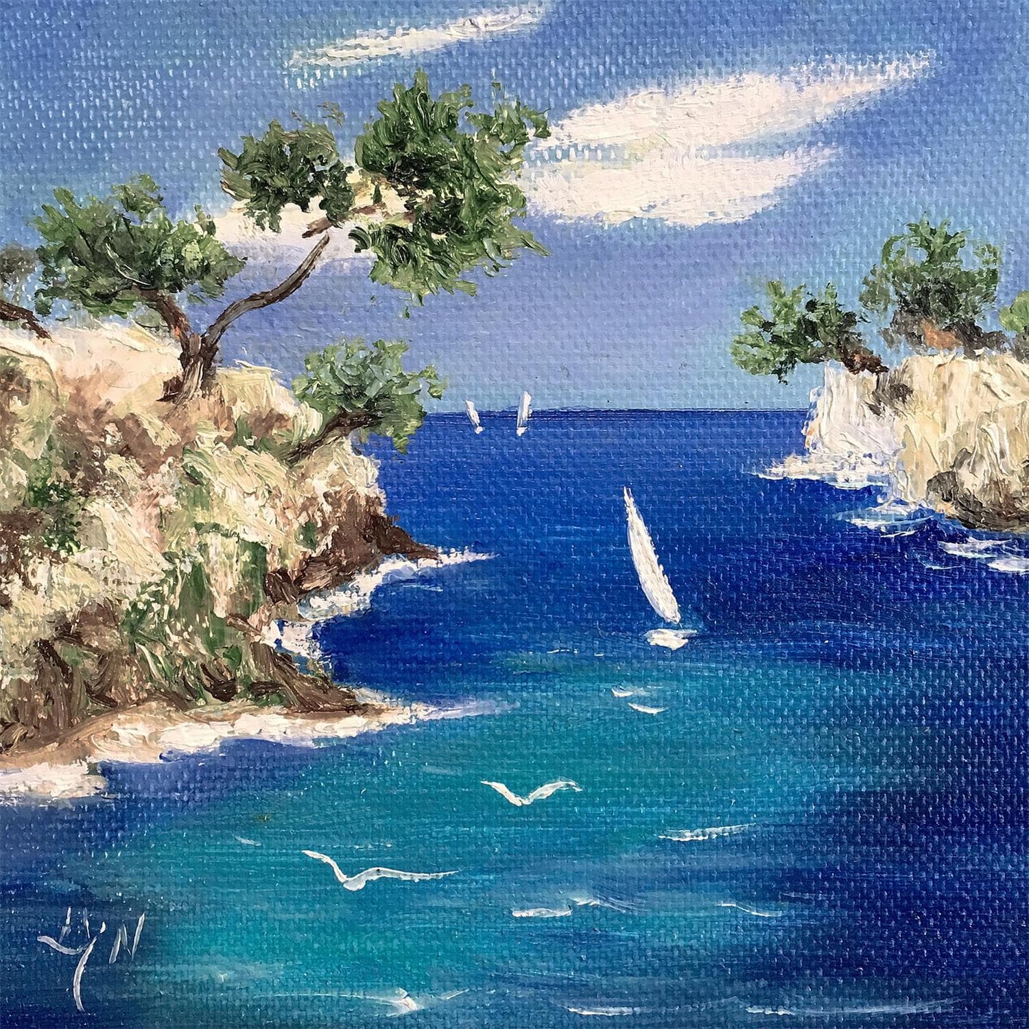 This unique and original contemporary artwork "Calanque" on the subject of Landscapes has been created by the contemporary artist Lyn.
