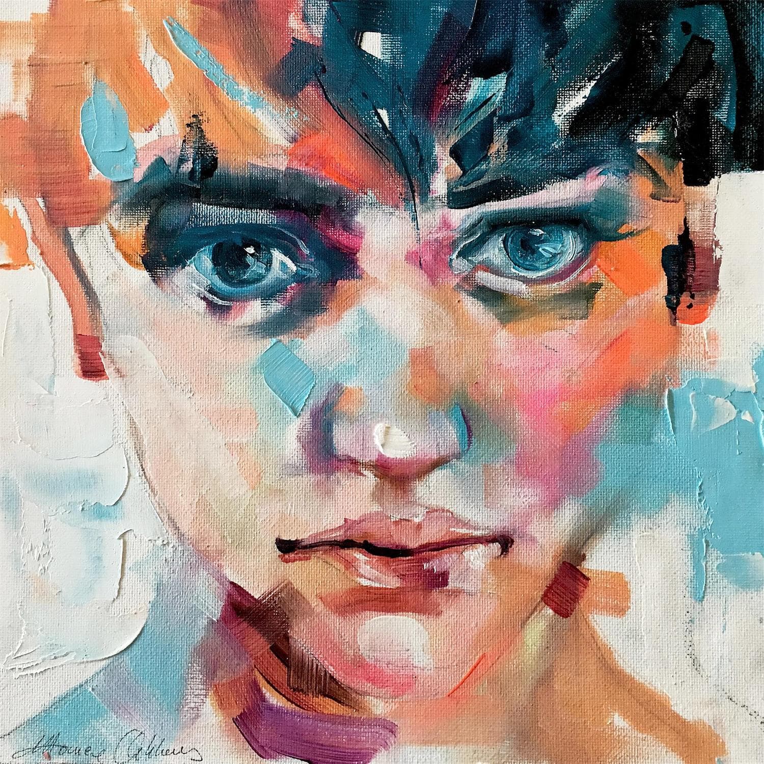 This unique and original contemporary artwork "Occhi blu" on the subject of Portrait has been created by the contemporary artist Abbondanzia Monica.
