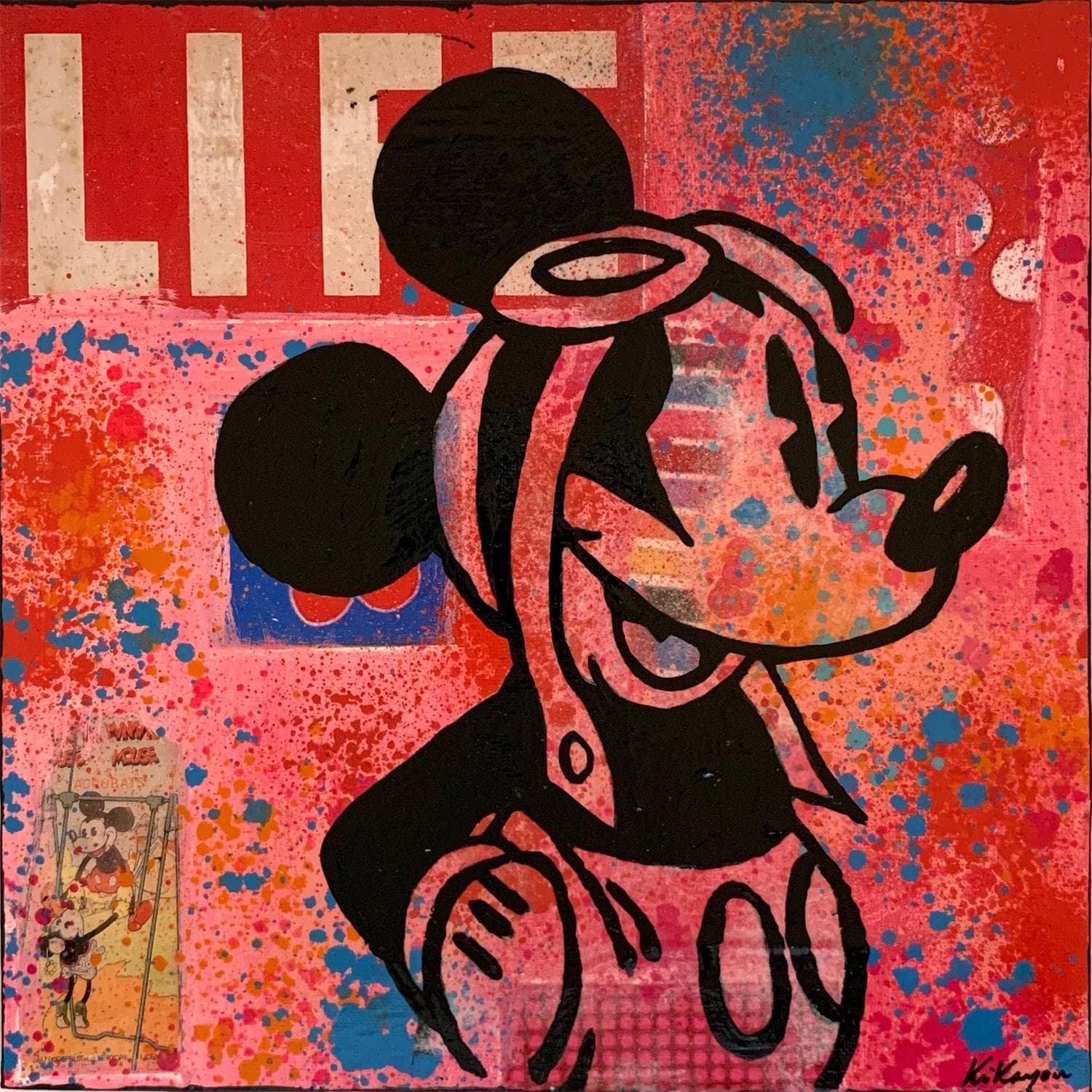 This unique and original contemporary artwork "Mickey aviator" on the subjects of Portrait, Pop icons has been created by the contemporary artist Kikayou.