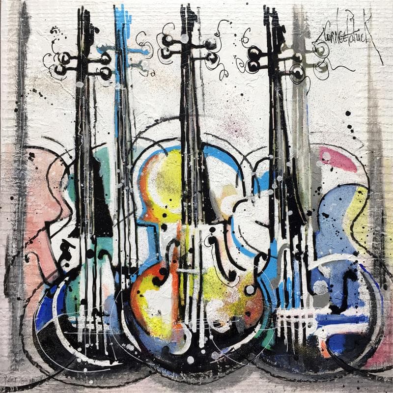 This unique and original contemporary artwork "Happy Pop violins" on the subject of Music has been created by the contemporary artist Cornée Patrick.