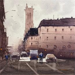 Pintura Le Paris Gris por Dandapat Swarup | Pintura Figurative Landscapes Urban Life style Watercolor