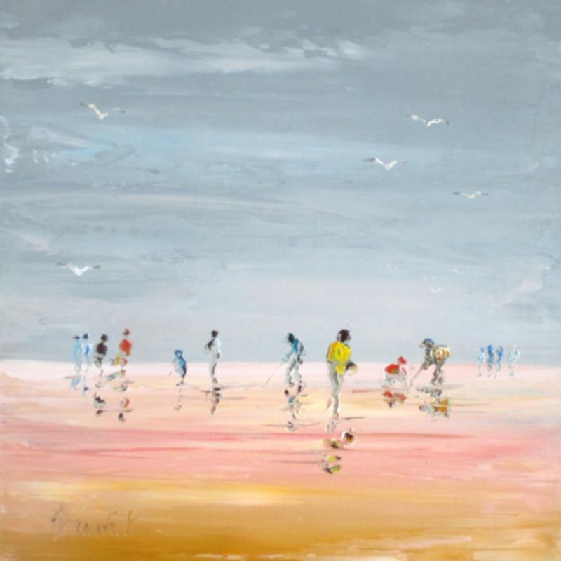 This unique and original contemporary artwork "Cueillette de coquillages sur la plage" on the subjects of Life style, Marine, Landscapes has been created by the contemporary artist Hanniet.