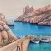 This unique and original contemporary artwork "AN61 Le port et la calanque de Sormiou" on the subjects of Landscapes, Marine has been created by the contemporary artist Burgi Roger.