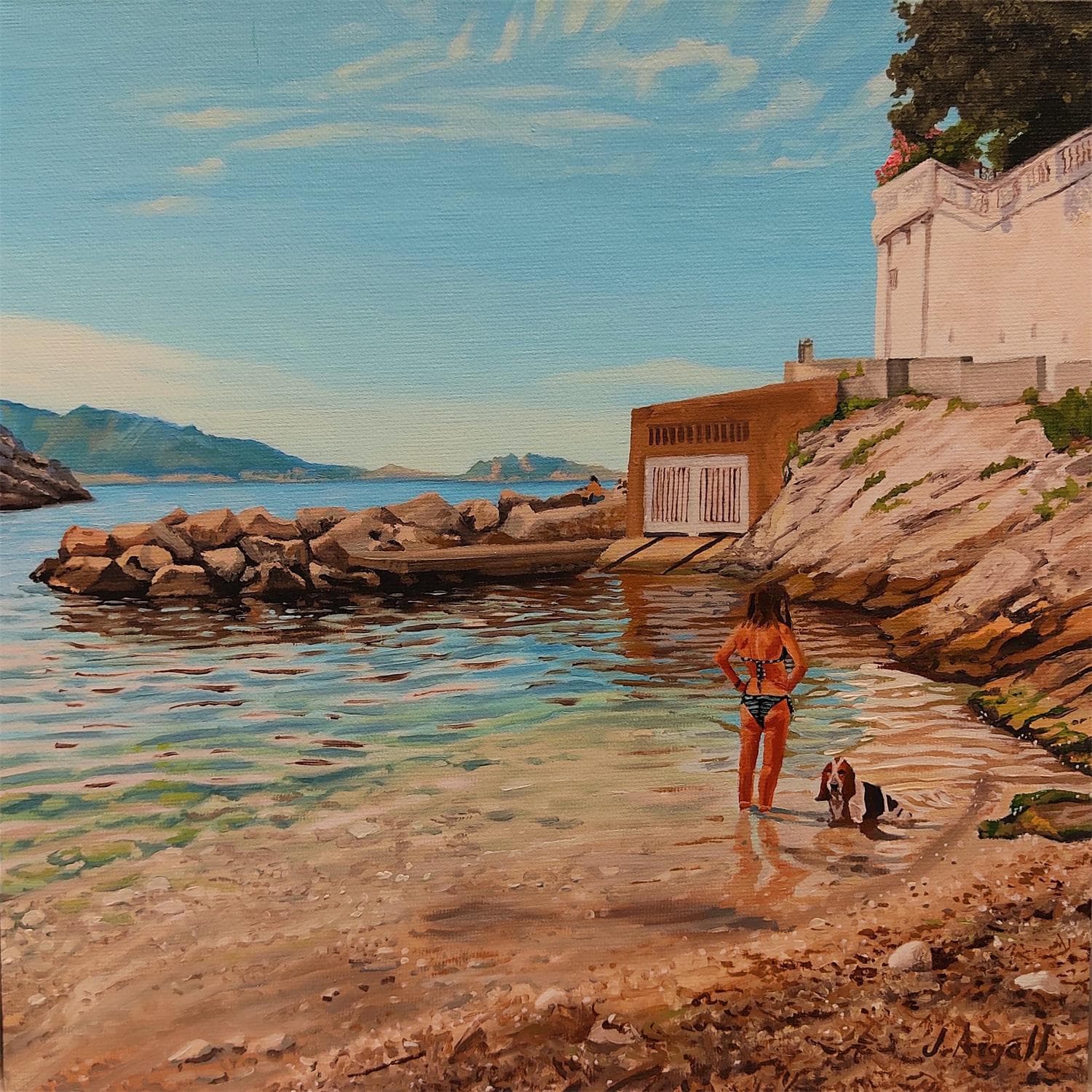 This unique and original contemporary artwork "Sous le pont de la Fausse Monnaie" on the subjects of Life style, Marine has been created by the contemporary artist Argall Julie.
