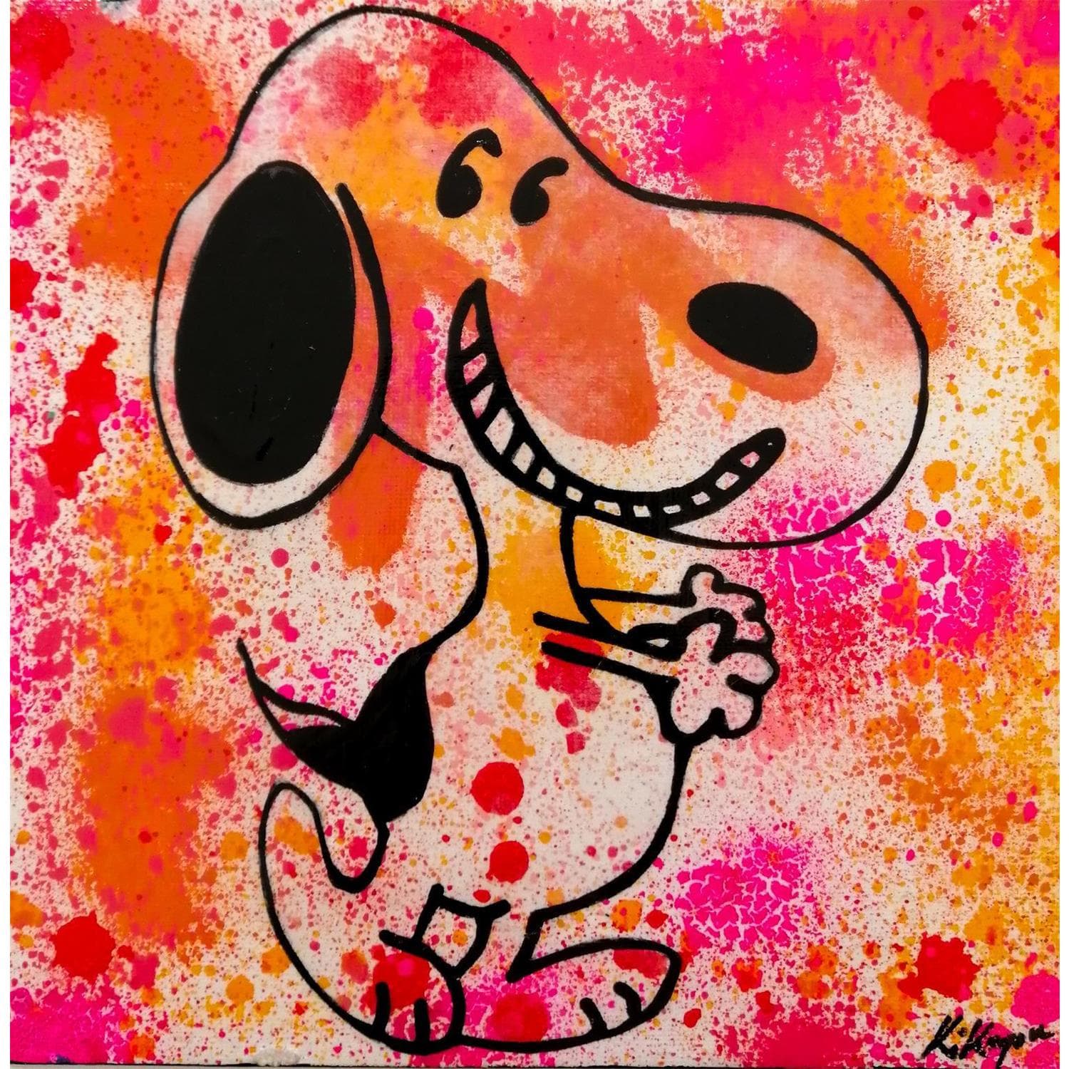 This unique and original contemporary artwork "Snoopy happy" on the subject of Pop icons has been created by the contemporary artist Kikayou.
