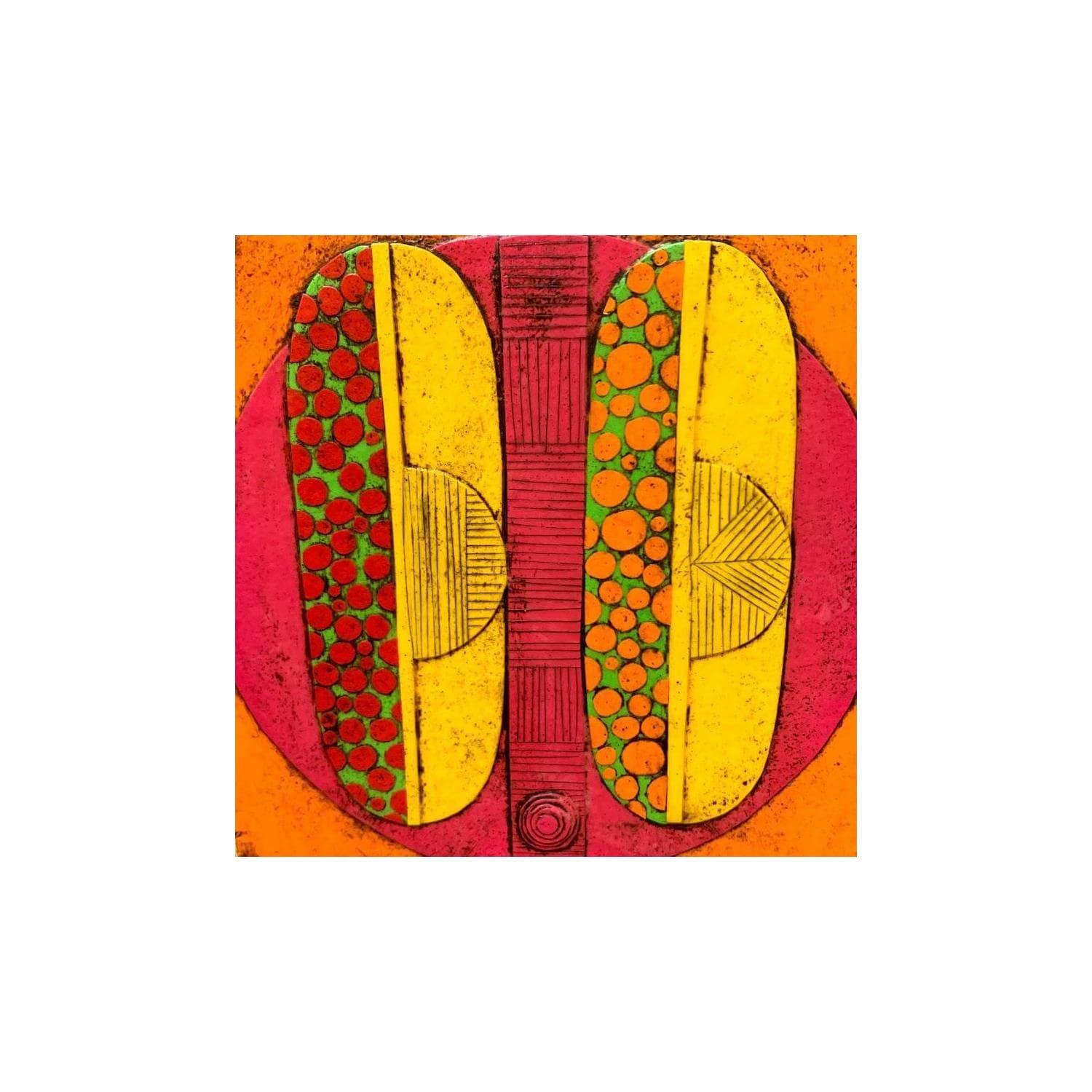 The artist used Cardboard, Gluing media on Cardboard to create this Raw art, Small size painting.