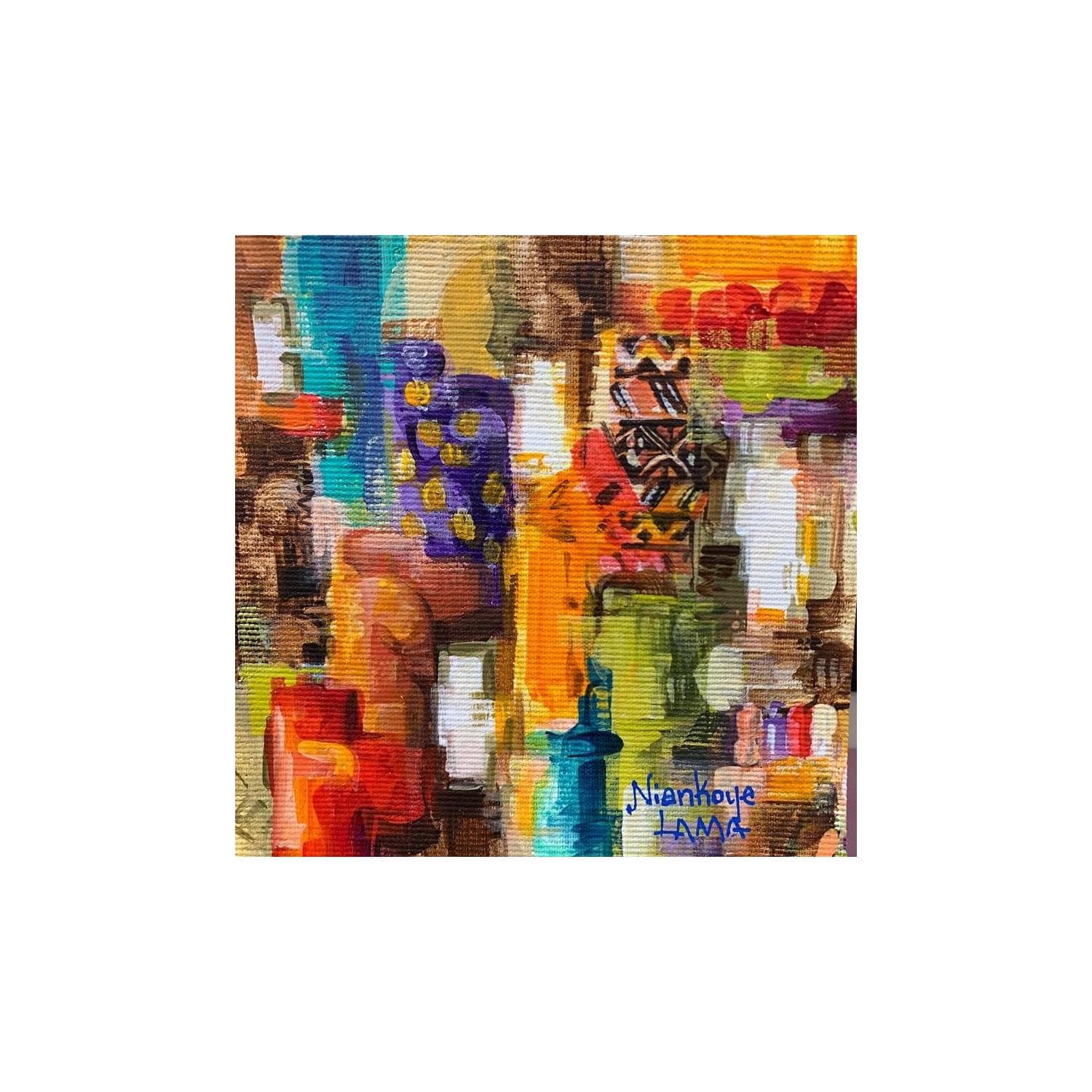 Niankoye's artistic journey began in his hometown N'zérékoré on the southern side of the Republic of Guinea. His passion for drawing and painting led him to go to the National School of Fine Arts in Conakry (the capital) in the 70's. With a degree in graphic arts, he attended various workshops and experimented with different techniques. Very attentive to the world of shapes and colours, he began by passionately copying nature. He travelled in his own country, to the Ivory Coast and finally to France, where he moved in 1990. He worked as a designer, illustrator and fashion designer, but soon decided to devote himself to painting. Travelling and discoveries opened other perceptions of the world to him and gave him a new vision of art. He was freed from traditional constraints and has leaned towards contemporary art since 2000, and has finally thrived in his abstract creations.