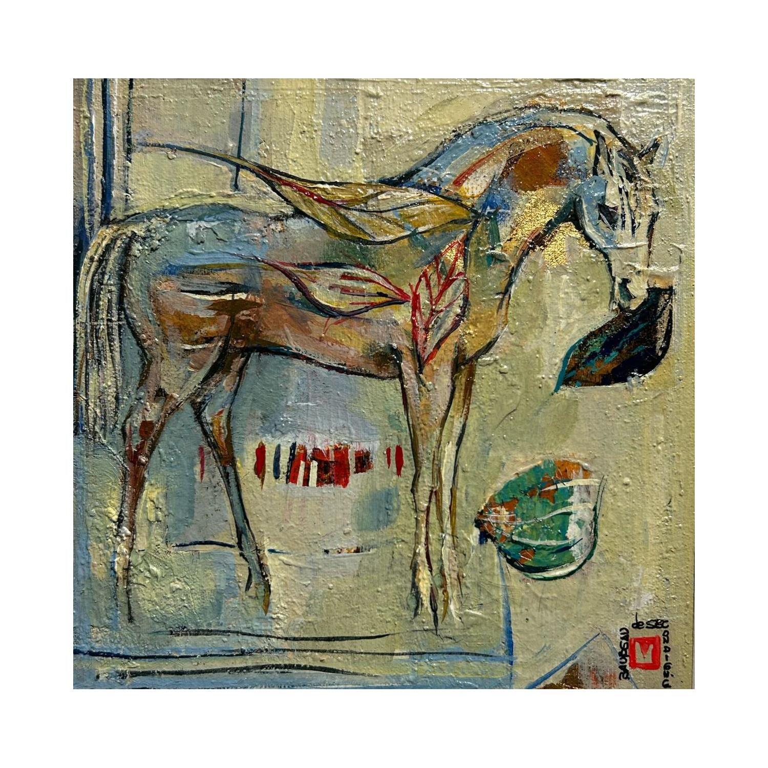 The artist used Oil, Acrylic media on Canvas to create this Figurative, Small size painting.