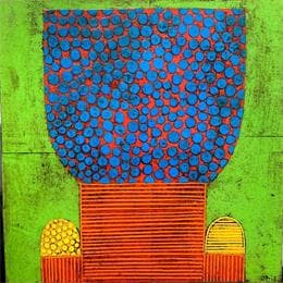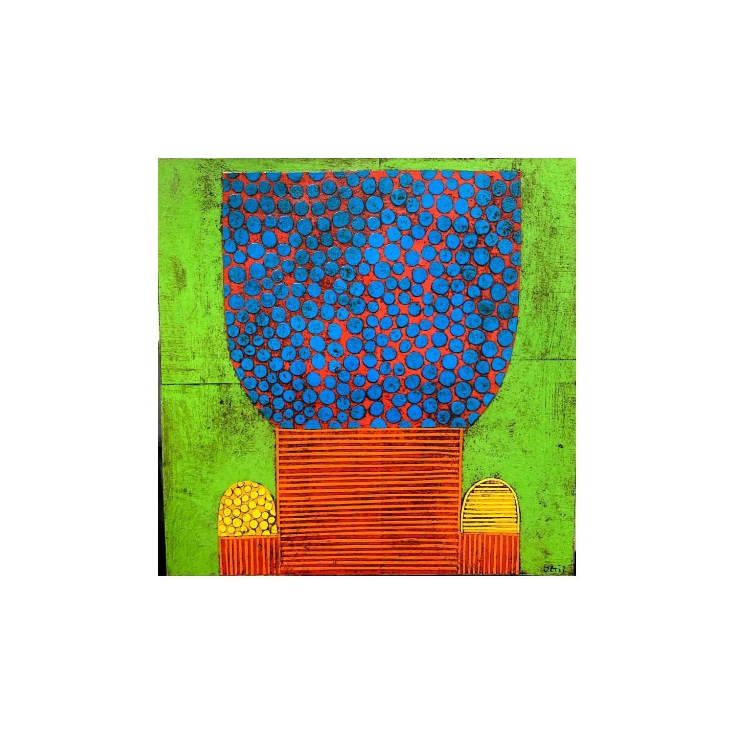The artist used Cardboard, Gluing media on Cardboard to create this Raw art, Small size painting.