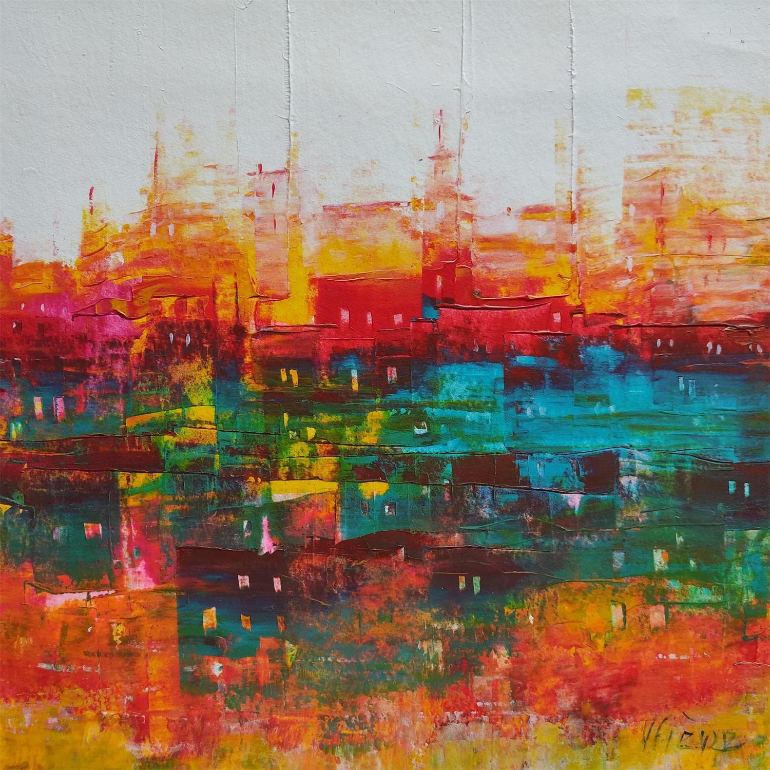 This unique and original contemporary artwork "Ville indienne" on the subject of Urban has been created by the contemporary artist Fièvre Véronique.