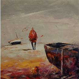 This unique and original contemporary artwork "retour de pêche" on the subject of Marine has been created by the contemporary artist Hébert Franck.