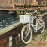 This unique and original contemporary artwork "White bike" on the subject of Urban has been created by the contemporary artist Niko Marina .
