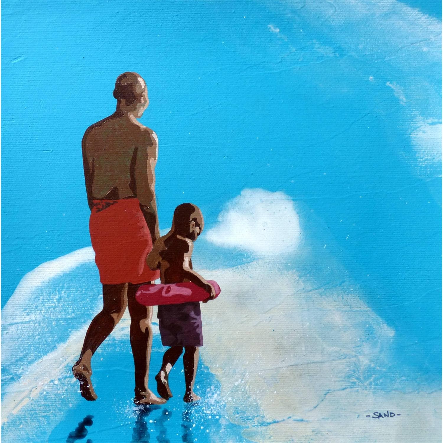 This unique and original contemporary artwork "Papa d'Atlantique estival" on the subjects of Landscapes, Marine, Life style has been created by the contemporary artist Sand.