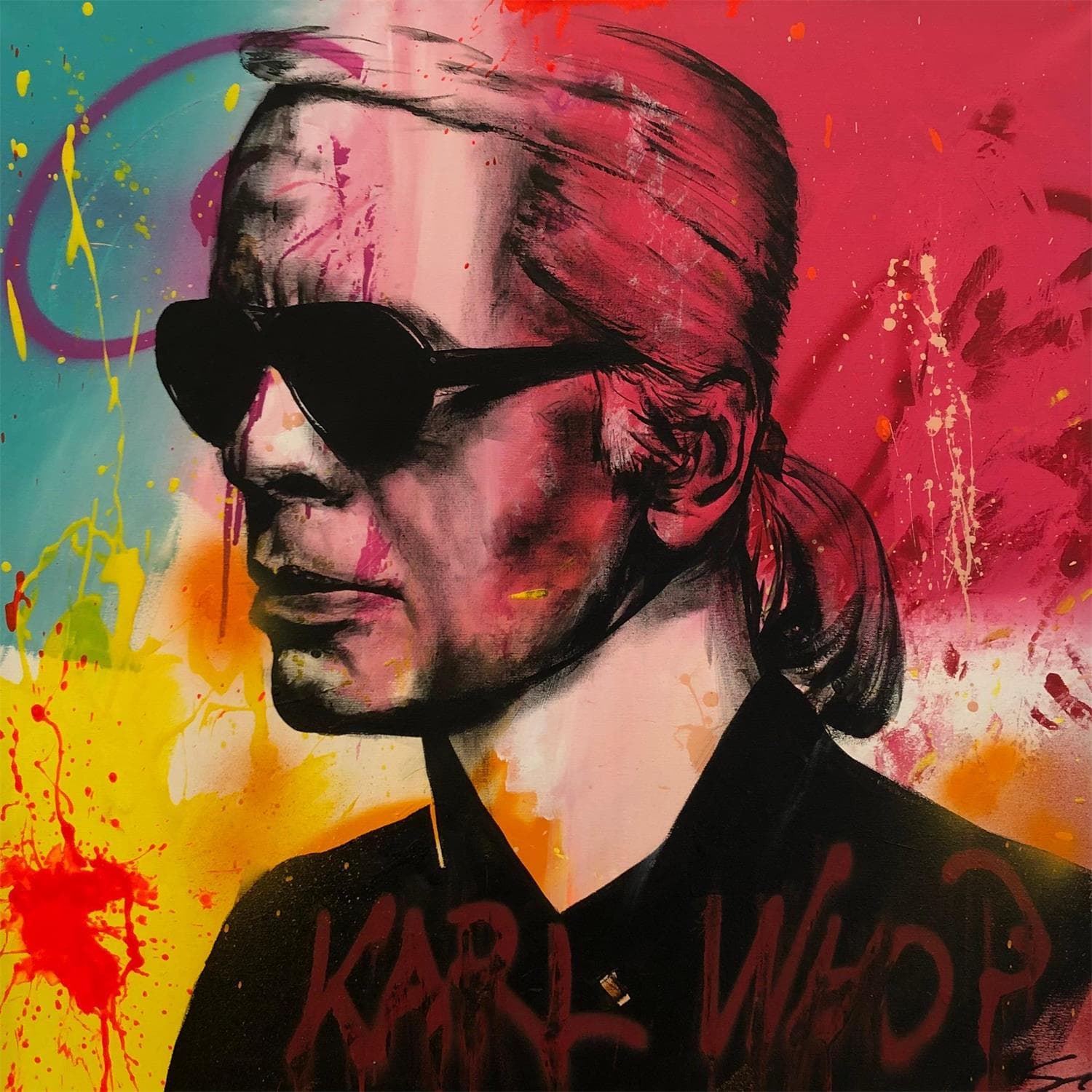 This unique and original contemporary artwork "Karl Lagerfeld" on the subject of Pop icons has been created by the contemporary artist Mestres Sergi.