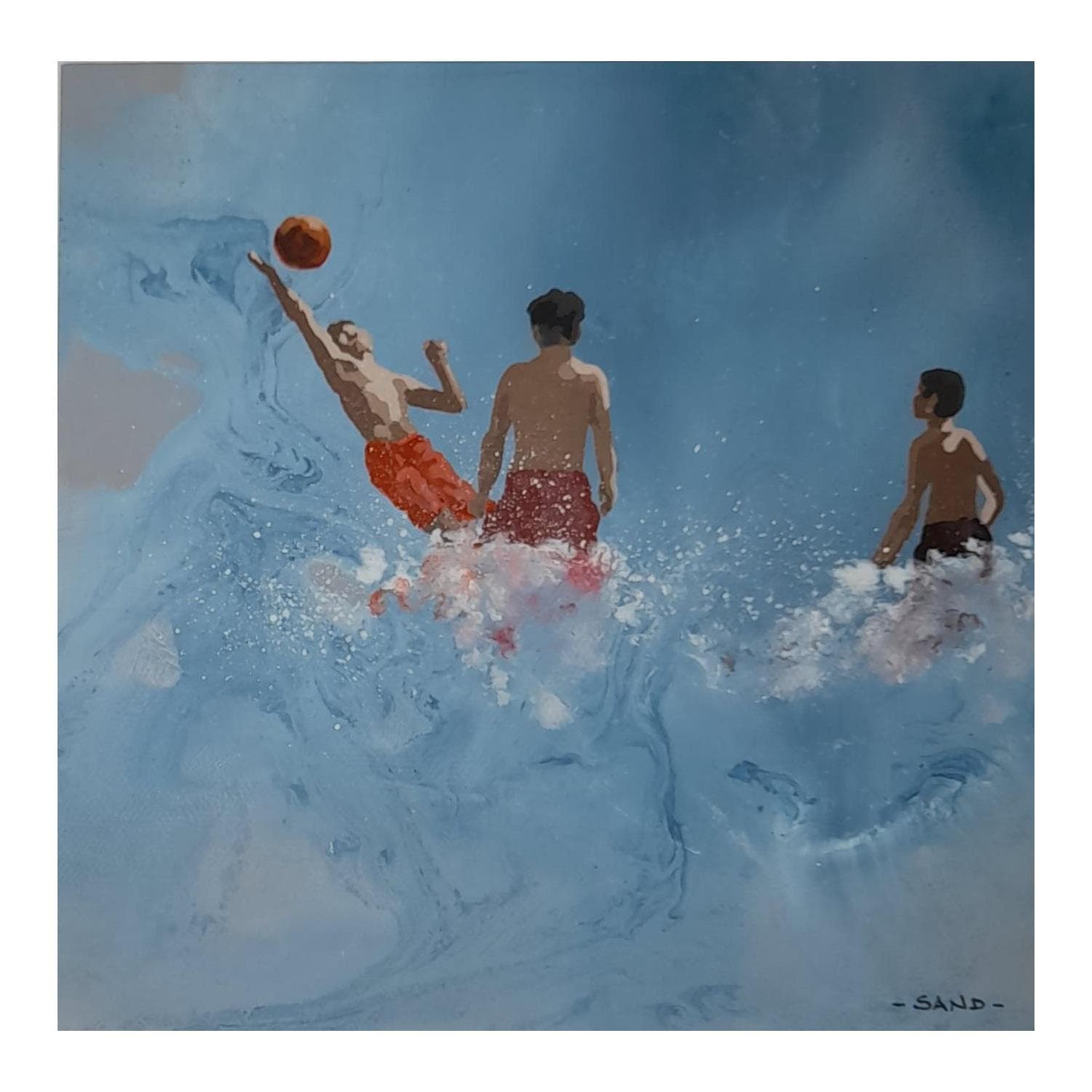 This unique and original contemporary artwork "Copains de ballon salé" on the subject of Life style has been created by the contemporary artist Sand.