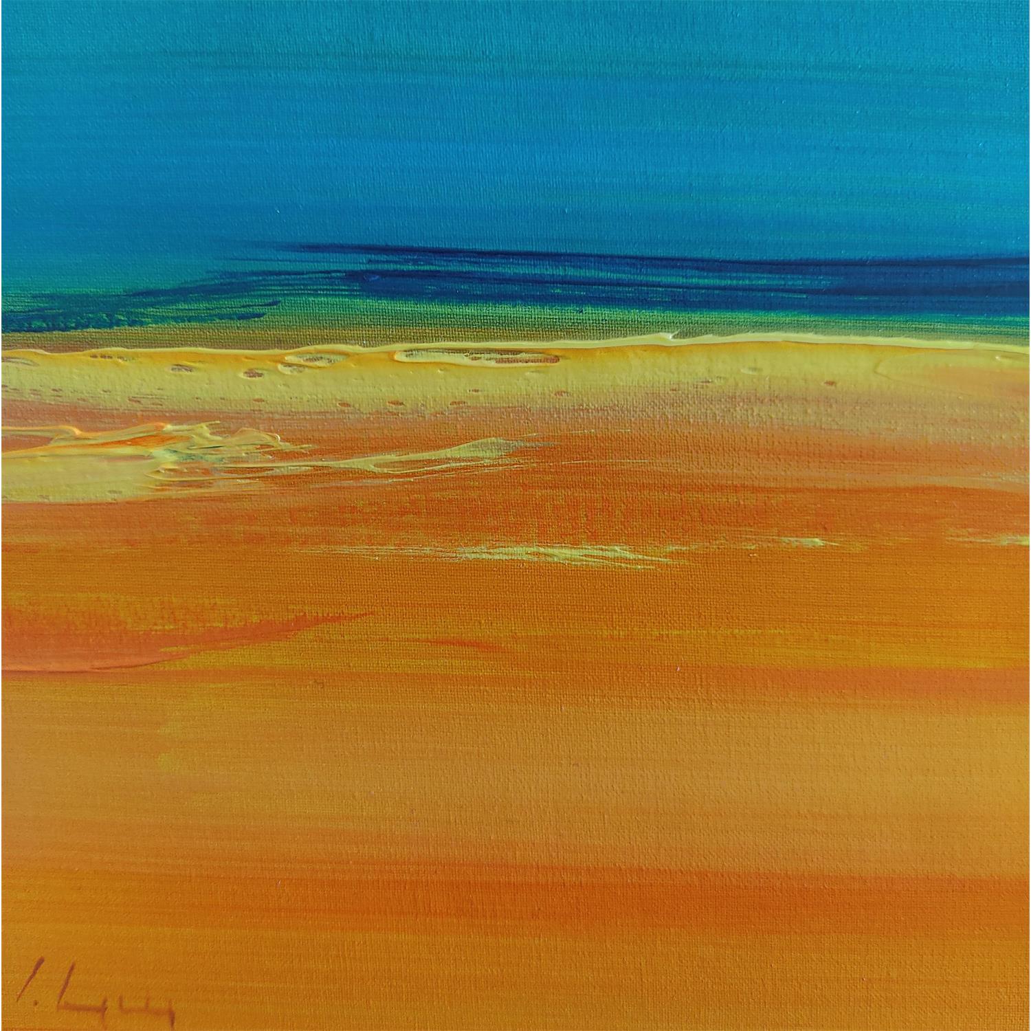 Viviane focused her painting on the different landscapes of our planet, notably in Canada and Polynesia as well as the USA, before placing her paintbrushes and canvases on the edge of the Atlantic. Today she has installed her studio in the heart of the Guerande peninsula, where she lives surrounded by marine horizons, beaches of fine sand, salt marshes and savage dunes. Viviane principally uses oil paints with very different tools, chosen depending on the effect she wishes to create. She loves to play with diluted colours and impasto and creates a marine dynamic in her works and the volume and the reliefs remind us of small, gushing waves.