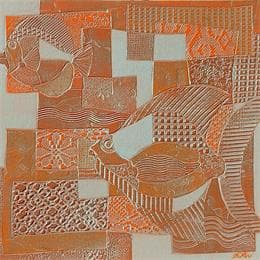 This unique and original contemporary artwork "4a Poissons Cuivre et Orange" on the subject of Animals has been created by the contemporary artist Devie Bernard .