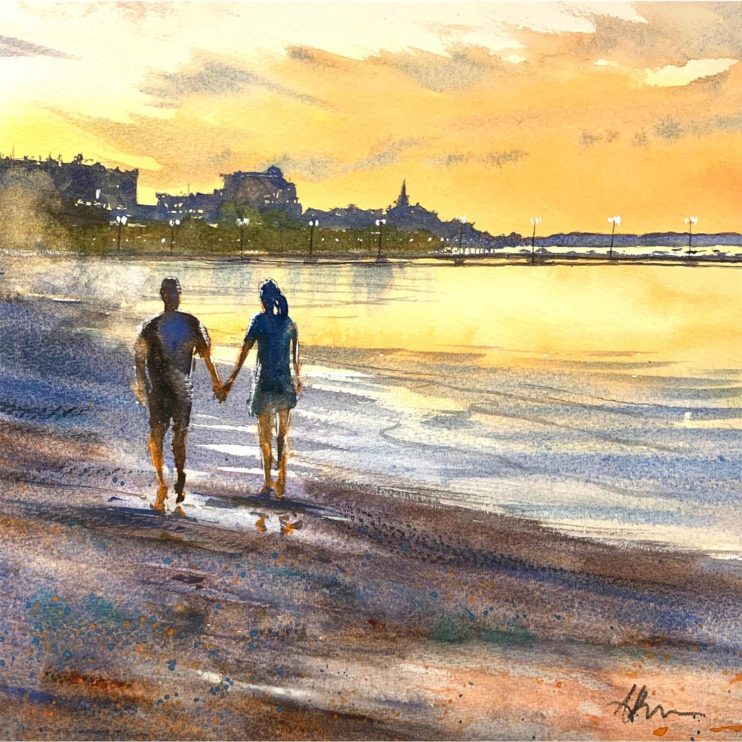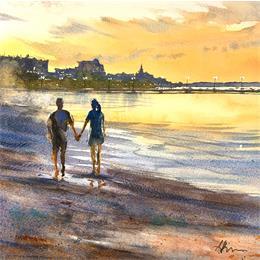 Pintura Arcachon Plage por Jones Henry | Pintura Watercolor