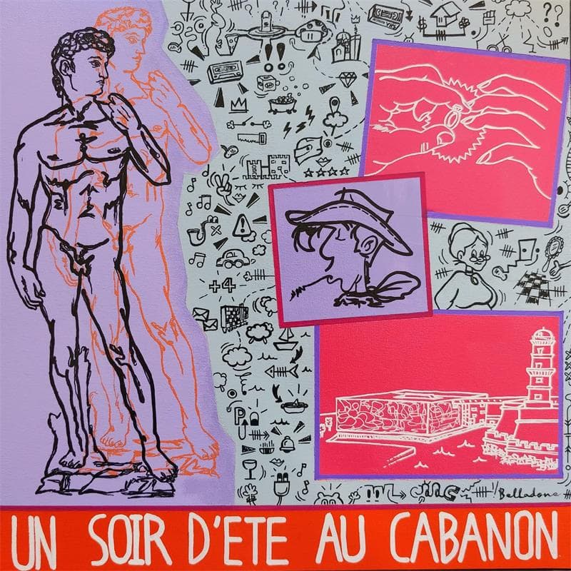 This unique and original contemporary artwork "Un soir d'été au cabanon" on the subject of Pop icons has been created by the contemporary artist Belladone.