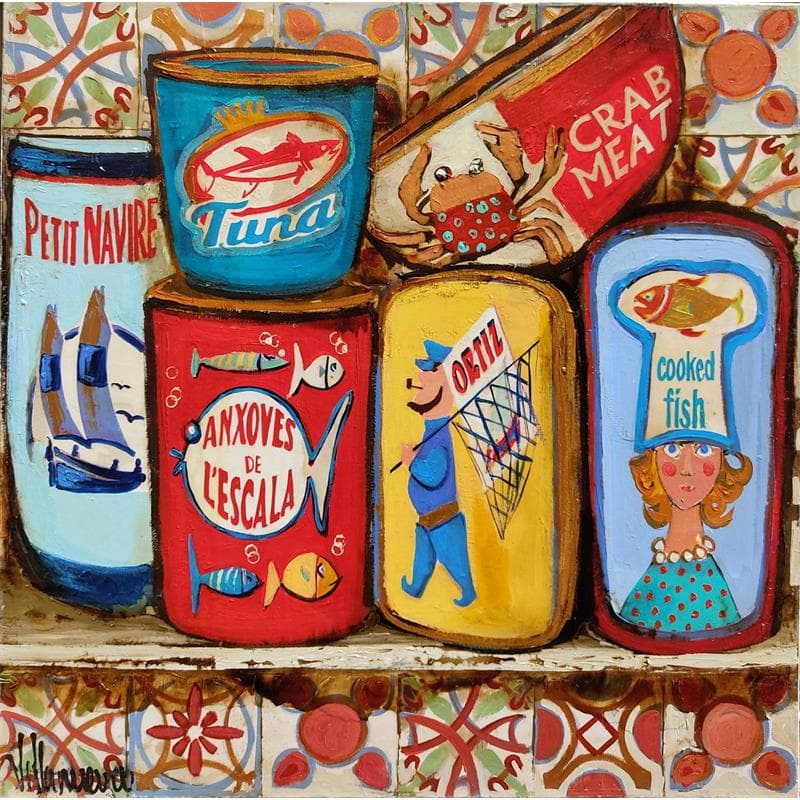 This unique and original contemporary artwork "Conservas" on the subject of Marine has been created by the contemporary artist Villanueva Puigdelliura Natalia.