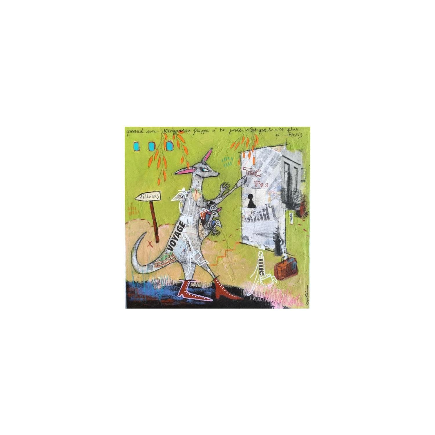 Pintura Partir por Colin Sylvie | Pintura Raw art Animals Acrylic Gluing Pastel