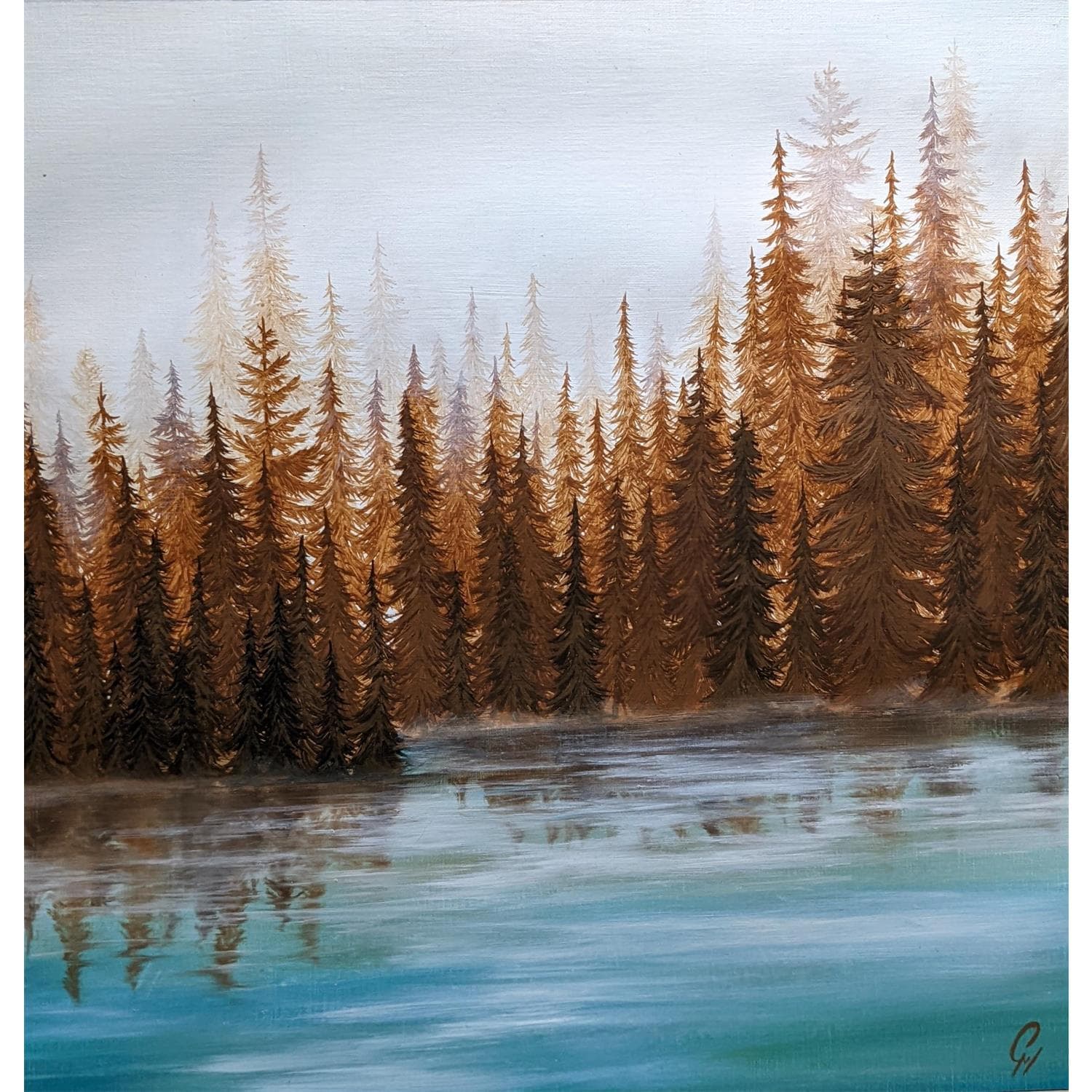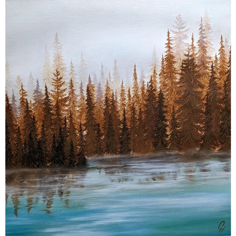 This unique and original contemporary artwork "Lac automnal" on the subject of Landscapes has been created by the contemporary artist Pressac Clémence.