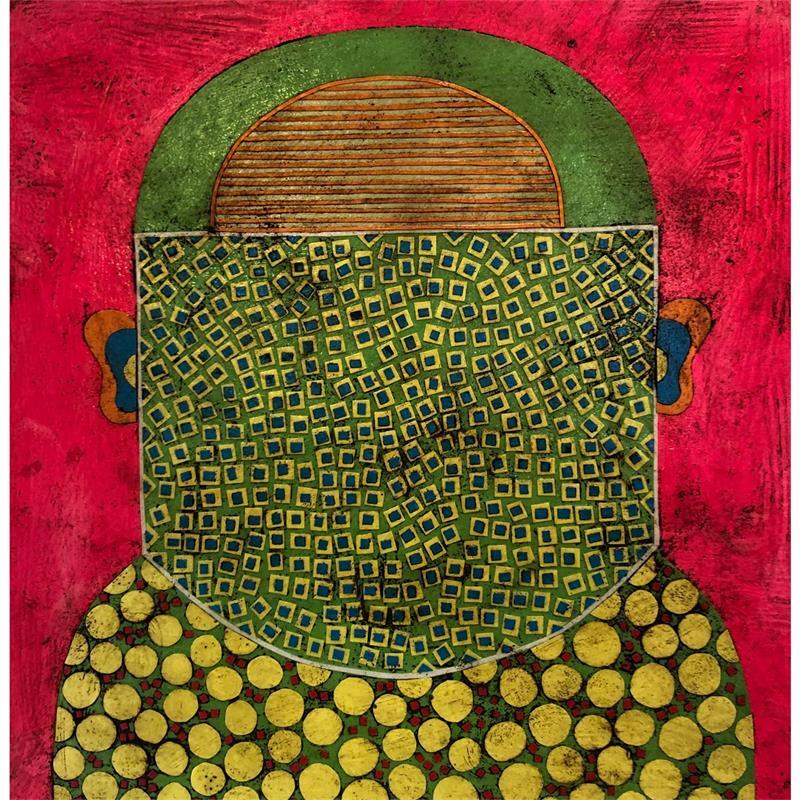The artist used Gluing, Wood media on Wood to create this Raw art, Small size painting.