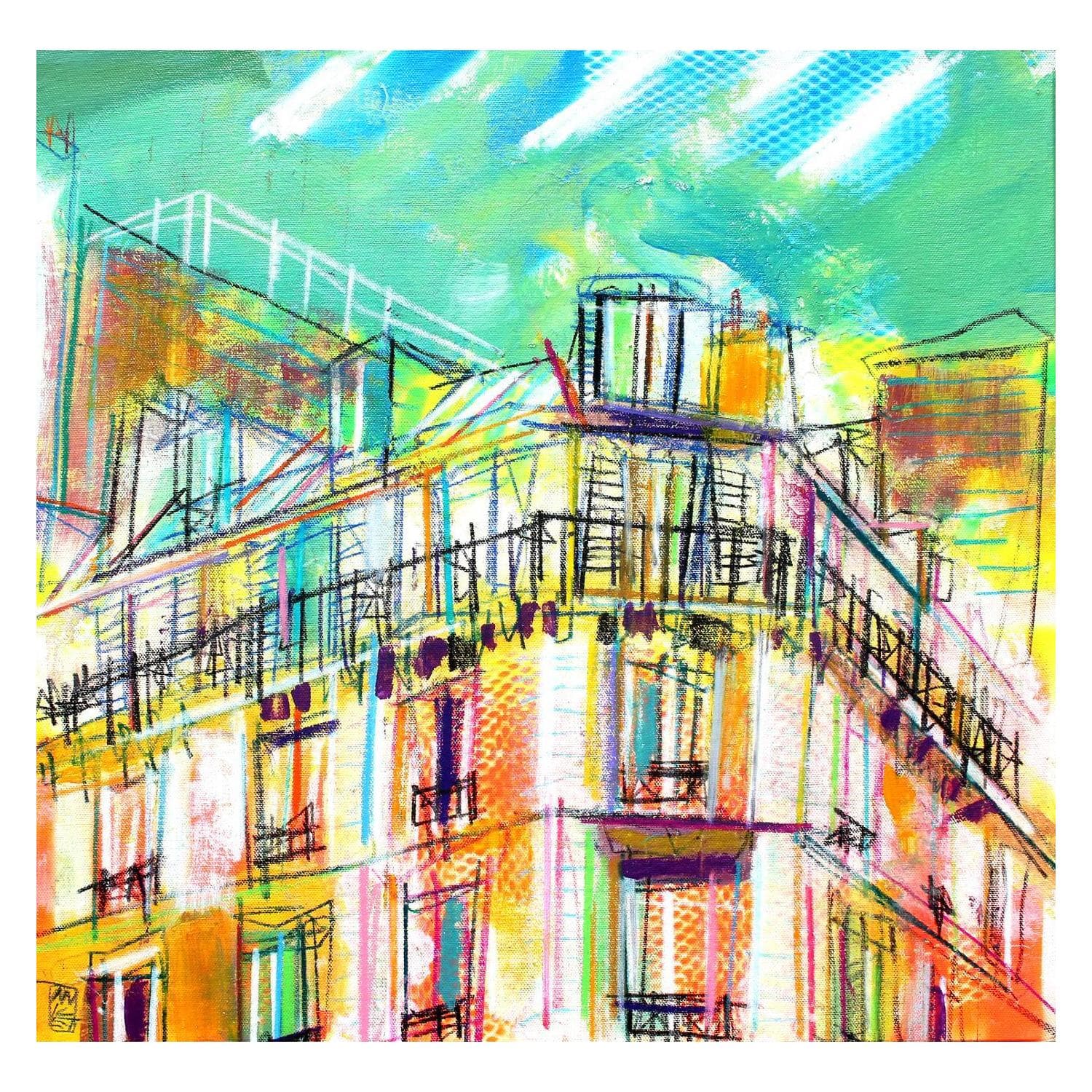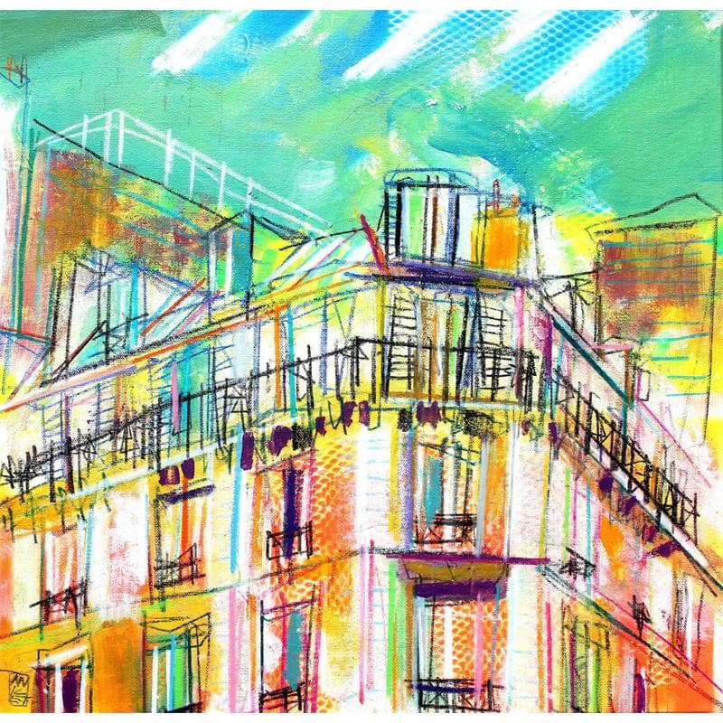 This unique and original contemporary artwork "L'été sonne à notre façade" has been created by the contemporary artist Anicet Olivier.