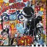 The artist used mixed medium on Dibon to create this Pop-art, Large size painting.