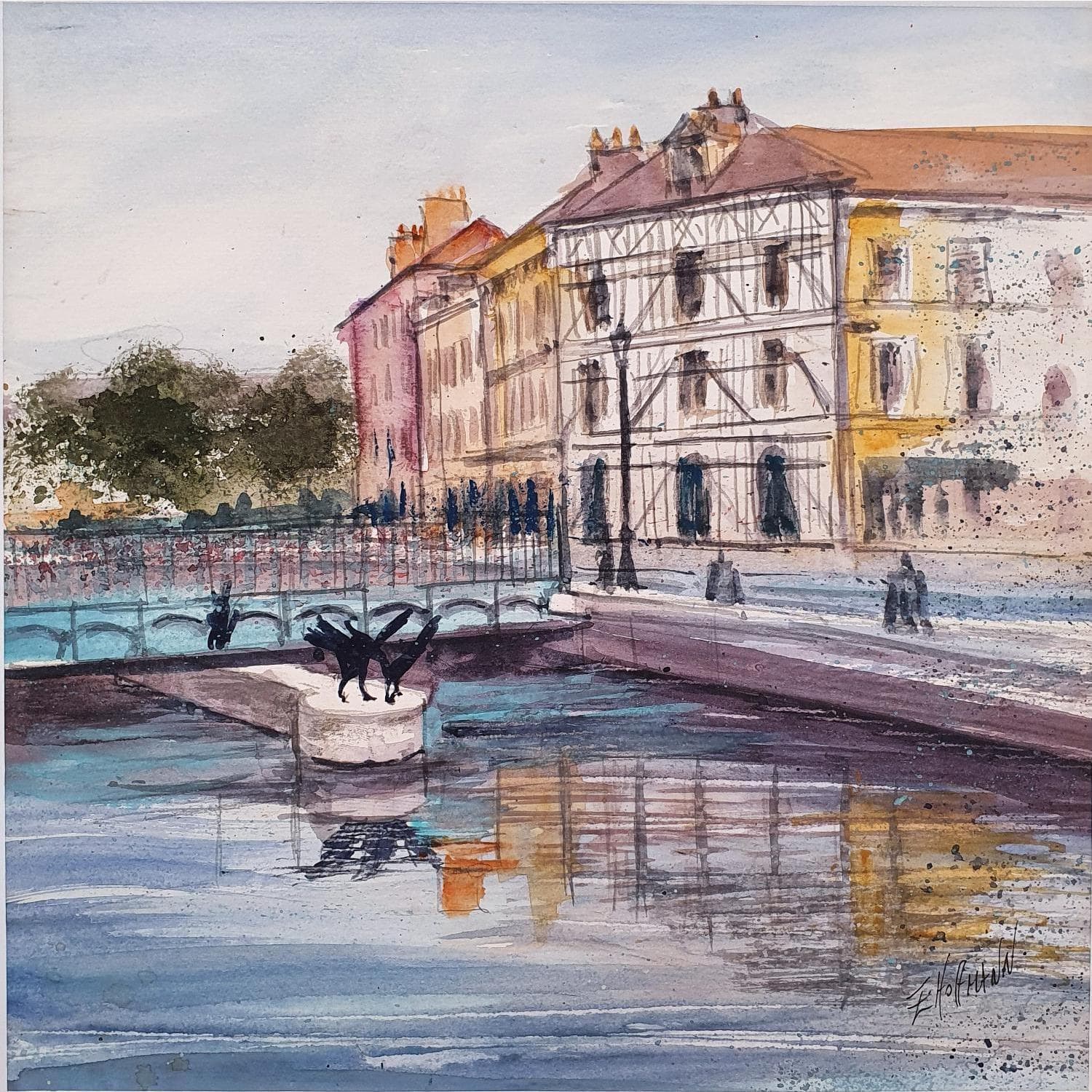 Pintura Troyes 100 Canal por Hoffmann Elisabeth | Pintura Figurative Landscapes Watercolor