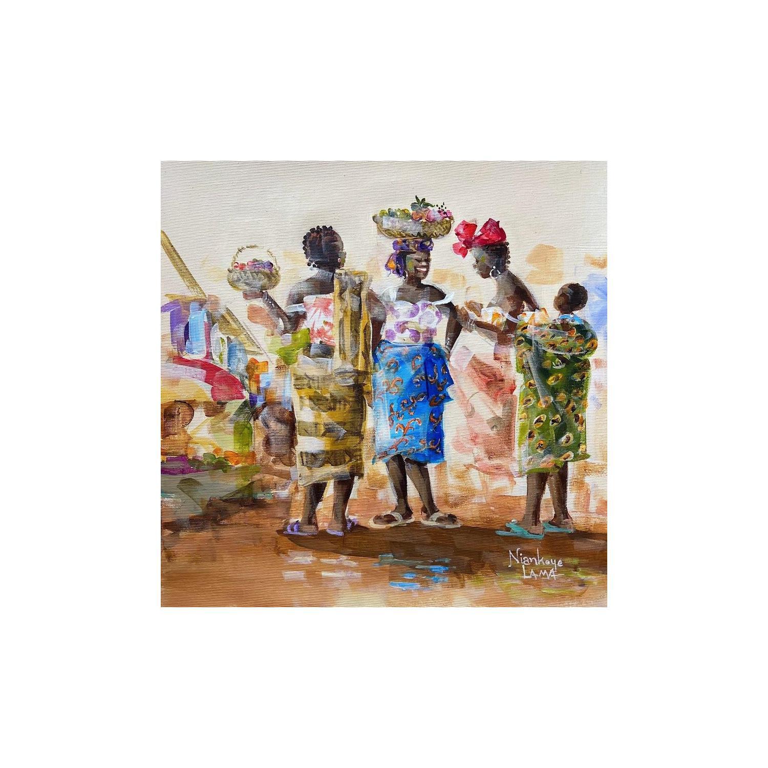 This unique and original contemporary artwork "Retrouvailles" on the subjects of Life style, Urban has been created by the contemporary artist Lama Niankoye.