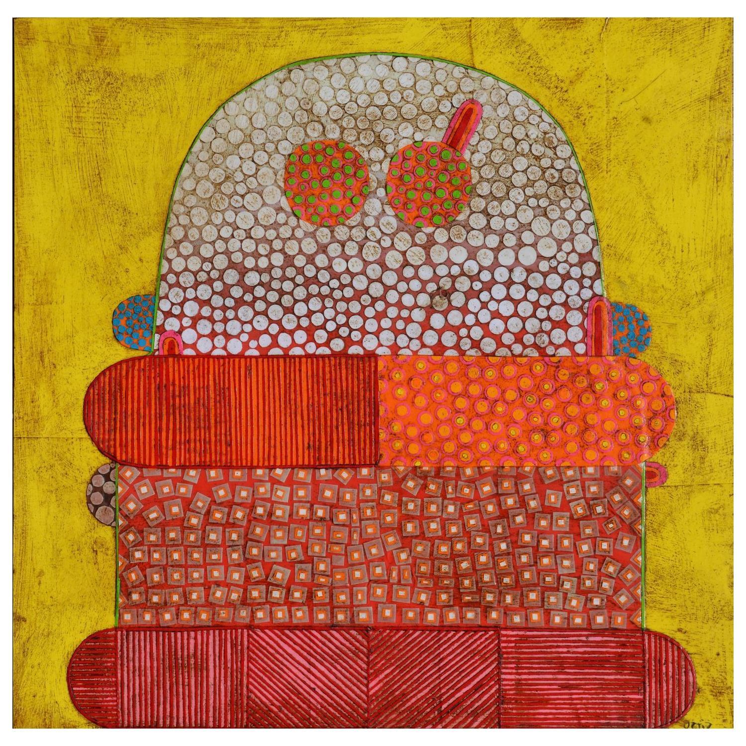 The artist used Gluing medium on Paper to create this Figurative, Small size painting.