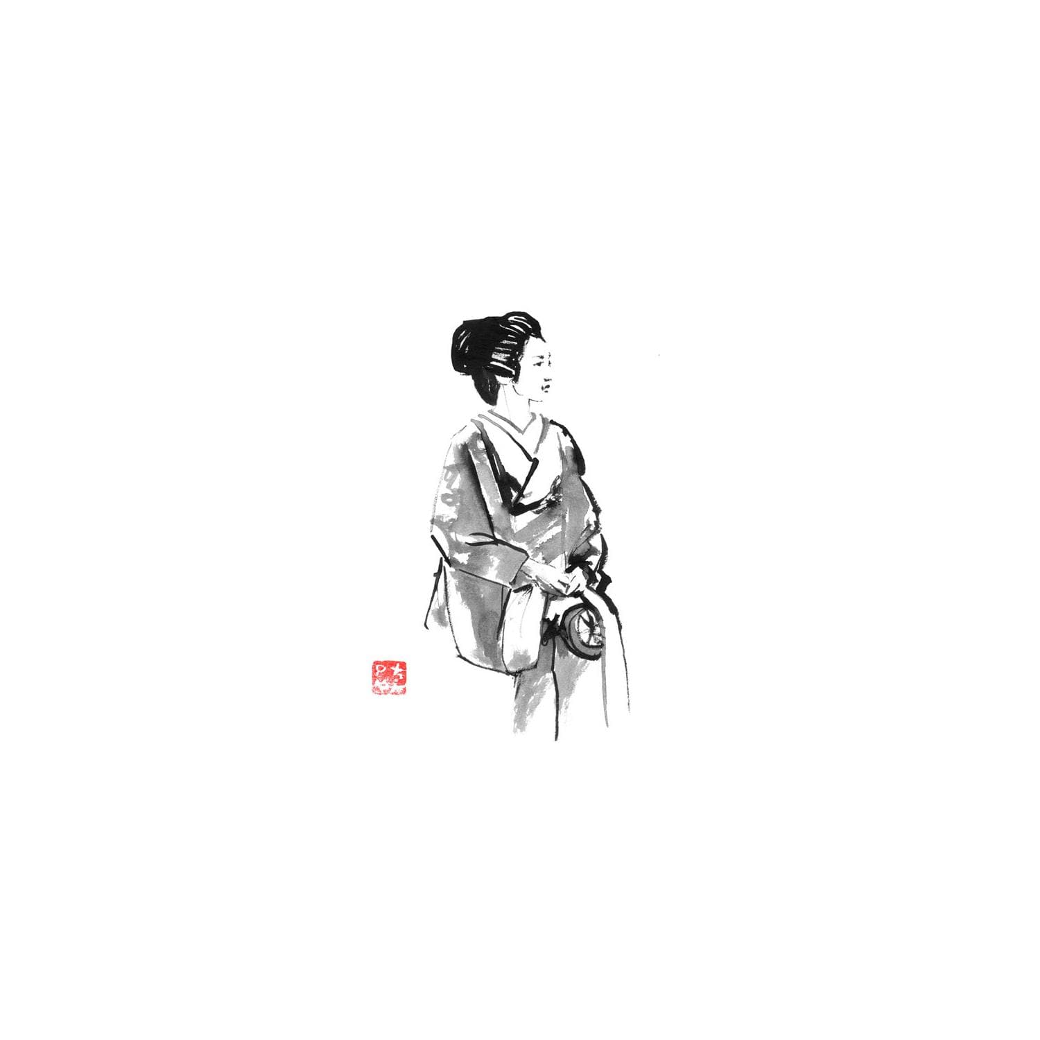 waiting geishaPintura waiting geisha por Péchane | Pintura Figurative Portrait Life style Watercolor Ink