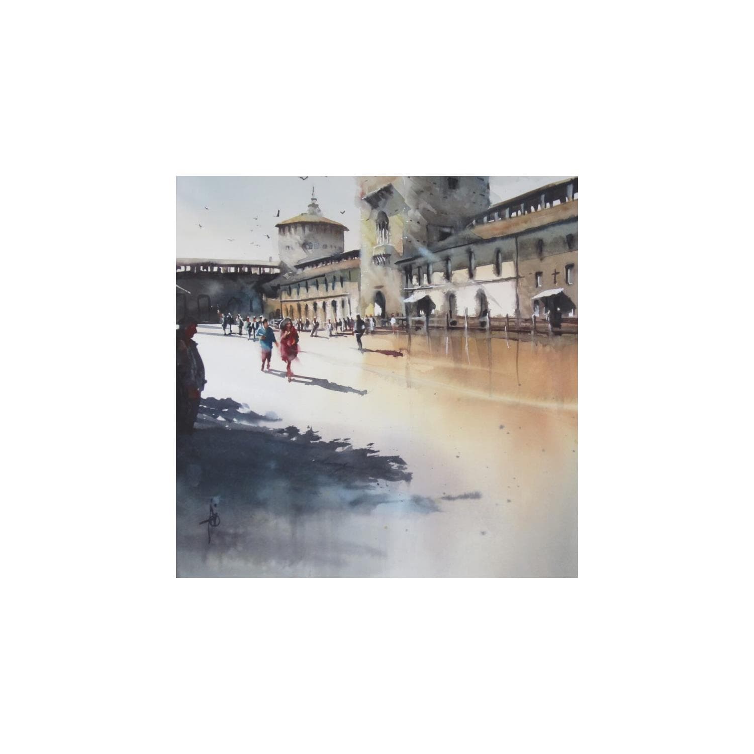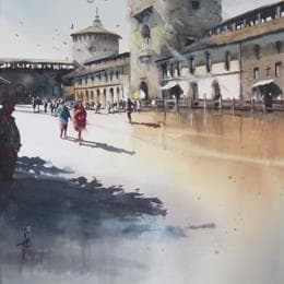 Quiétude dans la Cour du châteauPintura Quiétude dans la Cour du château por Abbatucci Violaine | Pintura Figurative Landscapes Watercolor