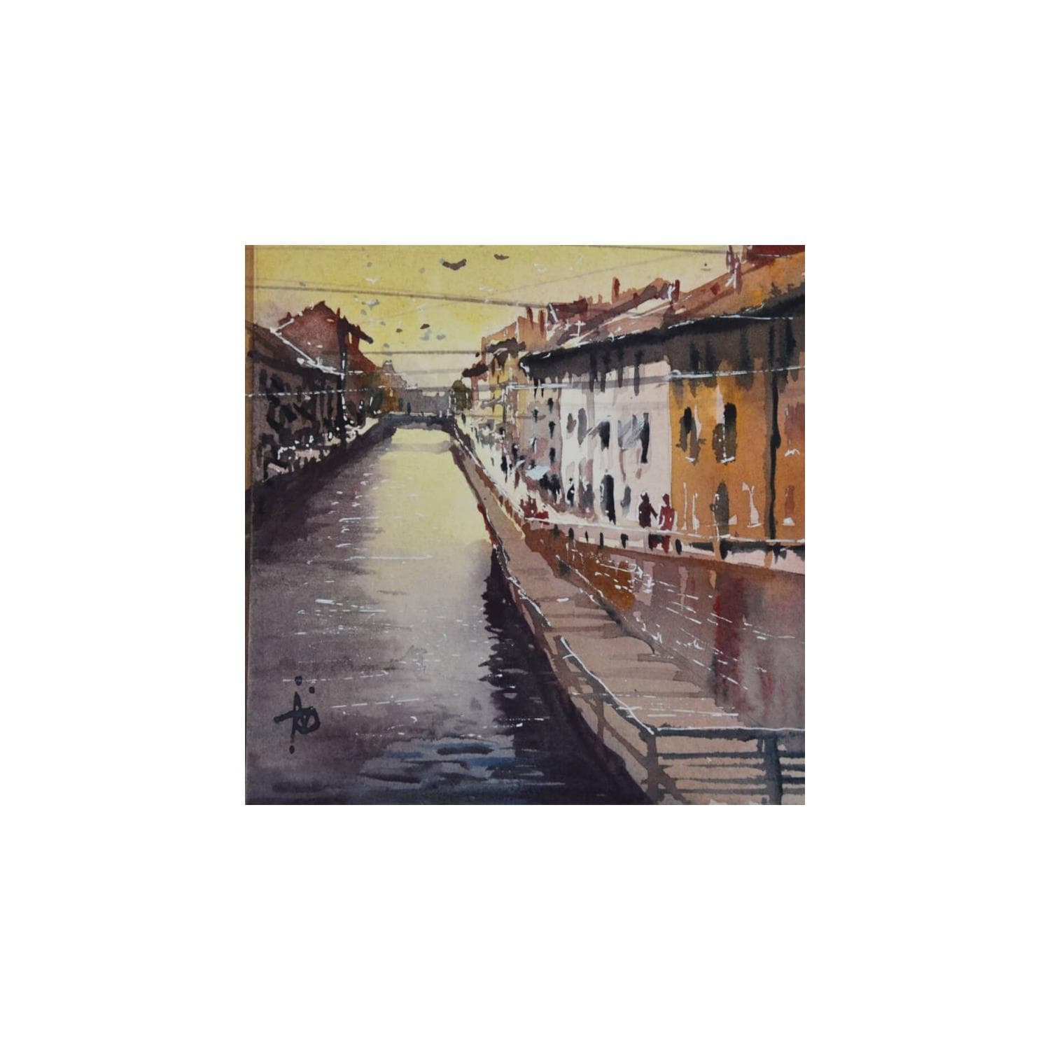 Pintura Ils revenaient souvent par Naviglio por Abbatucci Violaine | Pintura Figurative Landscapes Watercolor