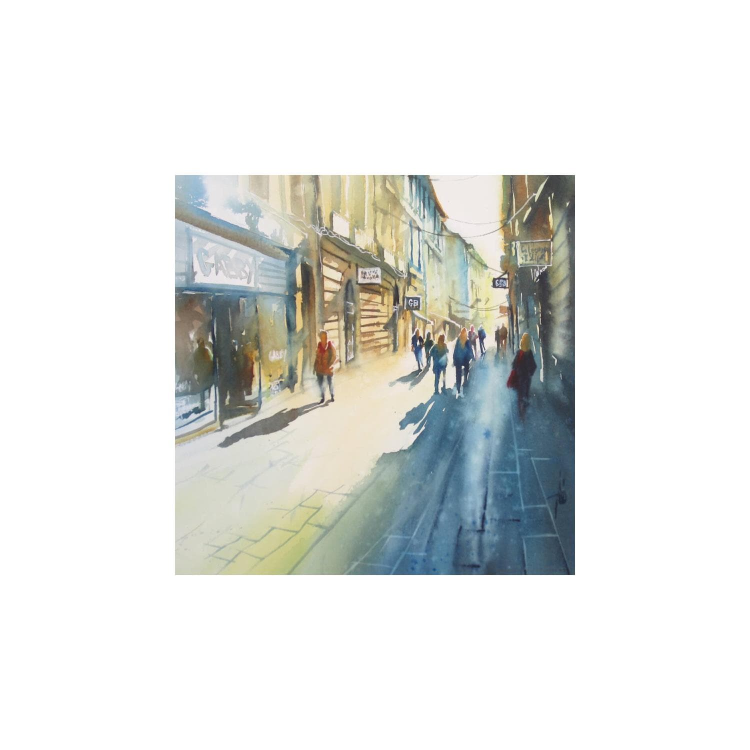 Flânerie par les rues piétonnesPintura Flânerie par les rues piétonnes por Abbatucci Violaine | Pintura Figurative Landscapes Watercolor
