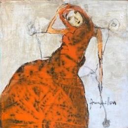 This unique and original contemporary artwork "The Orange Dress 301-1245-20220613-13" was created by contemporary artist Guillon Anne.