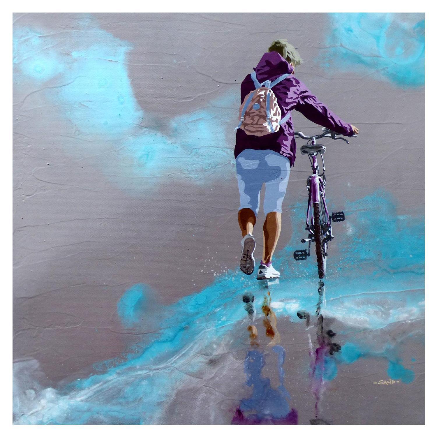 This unique and original contemporary artwork "Vélo de plage assorti" on the subjects of Marine, Life style has been created by the contemporary artist Sand.