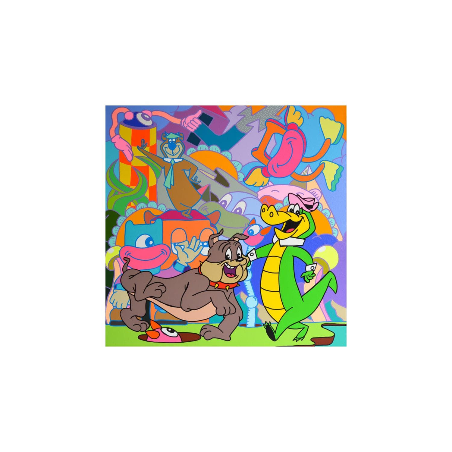 This unique and original contemporary artwork "Hector ,Wally Gator and Yogi bear" on the subject of Pop icons has been created by the contemporary artist Hank China.