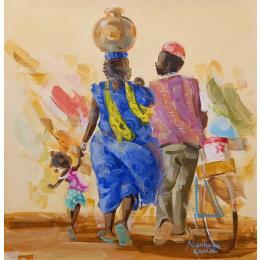 This unique and original contemporary artwork "La famille 2" on the subject of Life style has been created by the contemporary artist Lama Niankoye.
